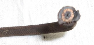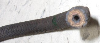 Shown here are two flexible brake hoses that have been sliced open. Any time you see hoses with this herringbone pattern outer covering, you can safely bet that they are very old.