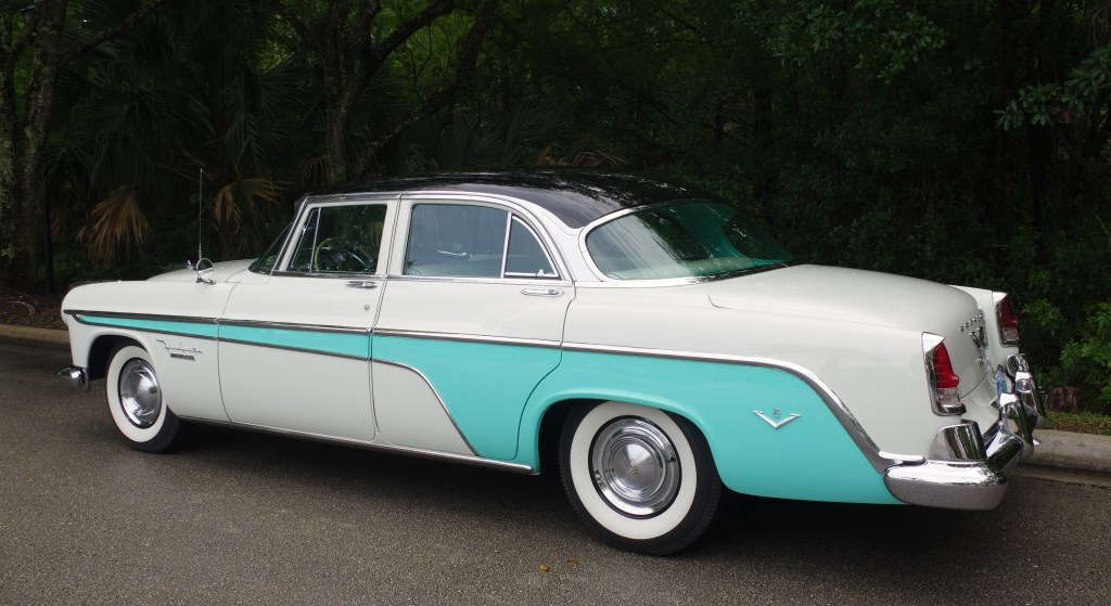 So, what is it about 1955 De Sotos that Joe finds most appealing? “It’s the car’s flowing lines and its overall shape that I absolutely adore,” Joe said. “And all that beautiful chrome trim which contributes to the car’s charm. Most importantly, I love its tri-color paint scheme. All the period magazine ads show the Coronado with a green body and white side sweep panel, but mine is the opposite, and I like it better. I’m also partial to the symmetrical contour of the dash with the clock in the middle. I just think it’s a beautiful automobile with solid good looks.”