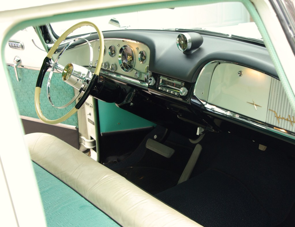 The original buyer of our feature car chose the body of his Coronado to be finished in white with the side color sweep panel painted bright aqua, and the roof painted black. The result is oh so ‘50s, with the paint scheme creating the illusion that the 217.9-inch-long body is shorter and lower than it actually is. Of all the beautiful automobiles that came out of Detroit during this period, the Coronado is considered to be one of the most attractive. Clearly, it’s easy to see why.